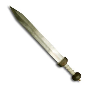 - Een zwaard dat een gladius heette. Dit was een kort zwaard, gemaakt om mee steken. Dit werkte goed als de vijanden dicht op elkaar stonden.